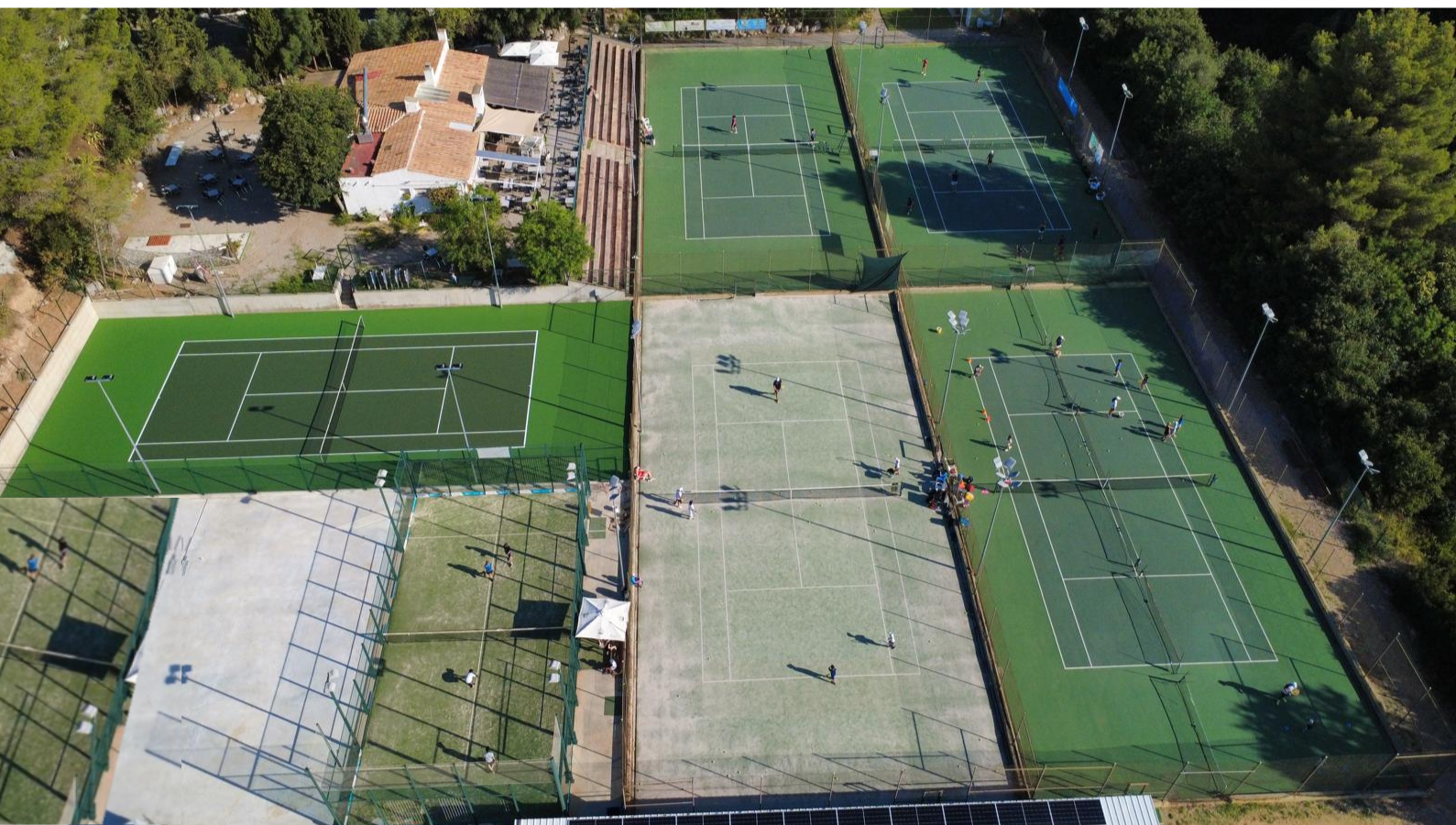 Les instal·lacions consten de 5 pistes de tennis, 2 pistes de pàdel, seu social-cafeteria, dues amplies terrasses, vestidors, dutxes i lavabos.